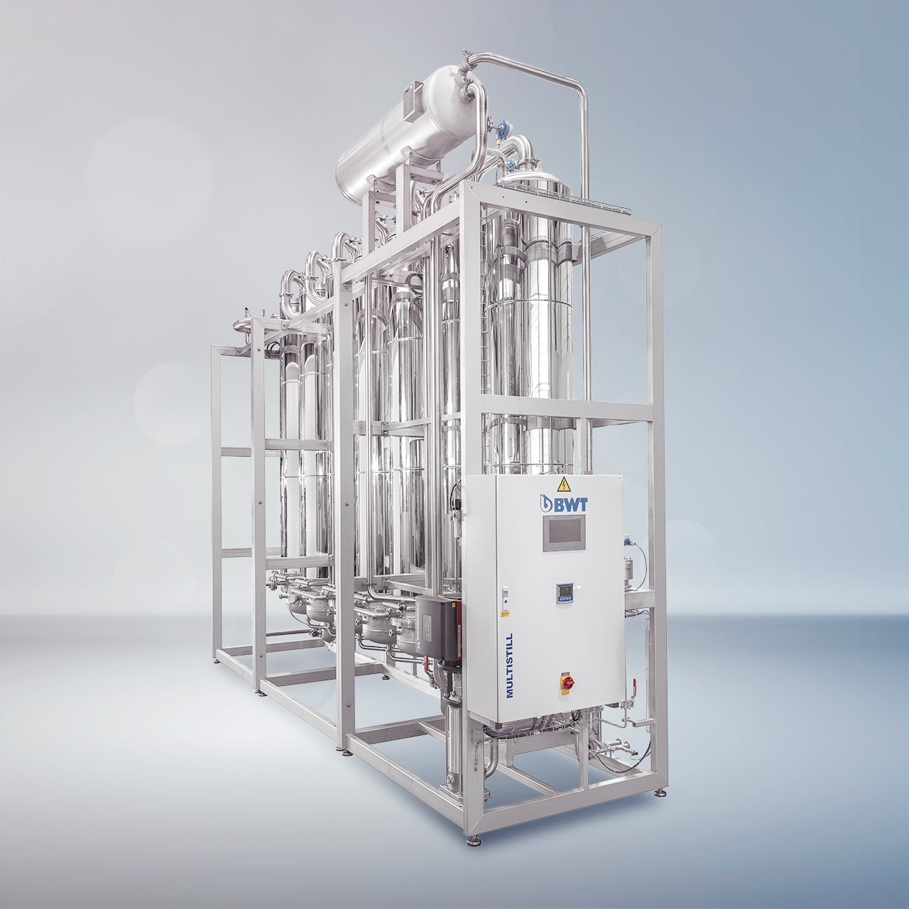 MULTI 降膜蒸馏装置以最经济的方式持续生产注射水。稳健的系统能处理不同质量的给水。通过对蒸馏过程的全面优化设计,实现了对不同水质的耐受。
