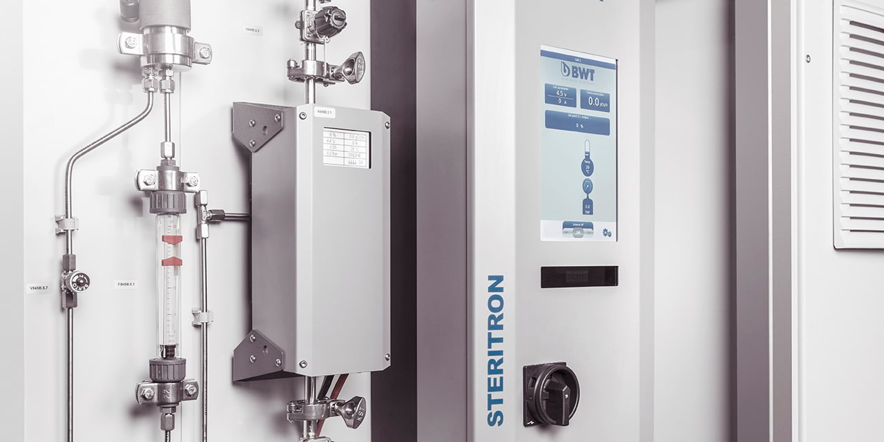 En outre, le stockage est continuellement assuré en toute sécurité dans le réservoir, pour le reste critique sur le plan microbiologique, à l’aide d’ozone et il demeure toujours sous contrôle. L’ensemble du système de distribution est périodiquement et automatiquement désinfecté à l’ozone et ce, jusqu’au point d’utilisation.