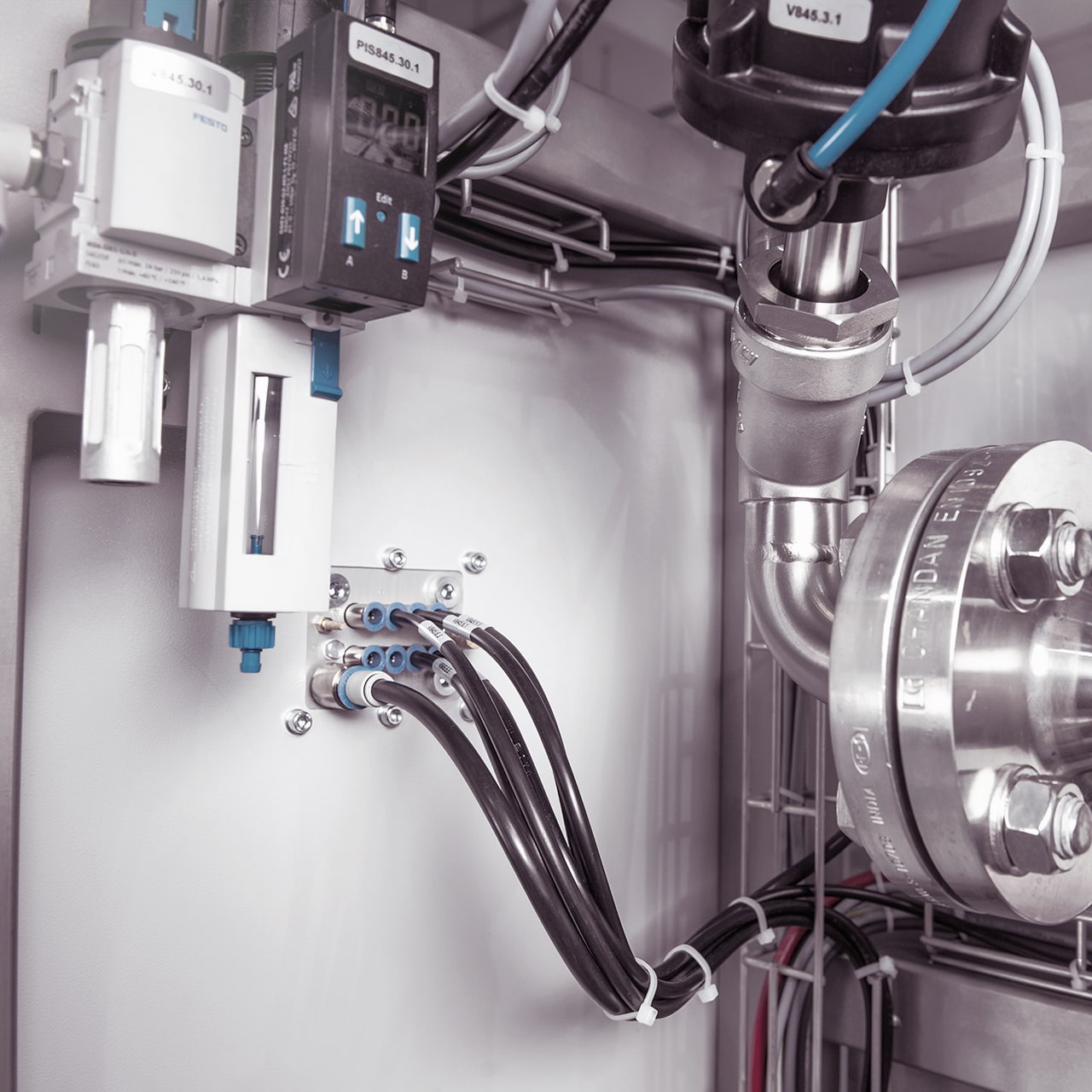 La conception globale du réservoir et de la conduite circulaire est plus simple. Il suffit d’un réservoir sans pression, de filtres stériles et de tuyaux normaux, sans isolation. Les systèmes de sanitisation à chaud nécessitent impérativement des réservoirs en acier inoxydable résistants à la pression, des carters de filtre chauffés et des canalisations isolées, qui sont très coûteux.